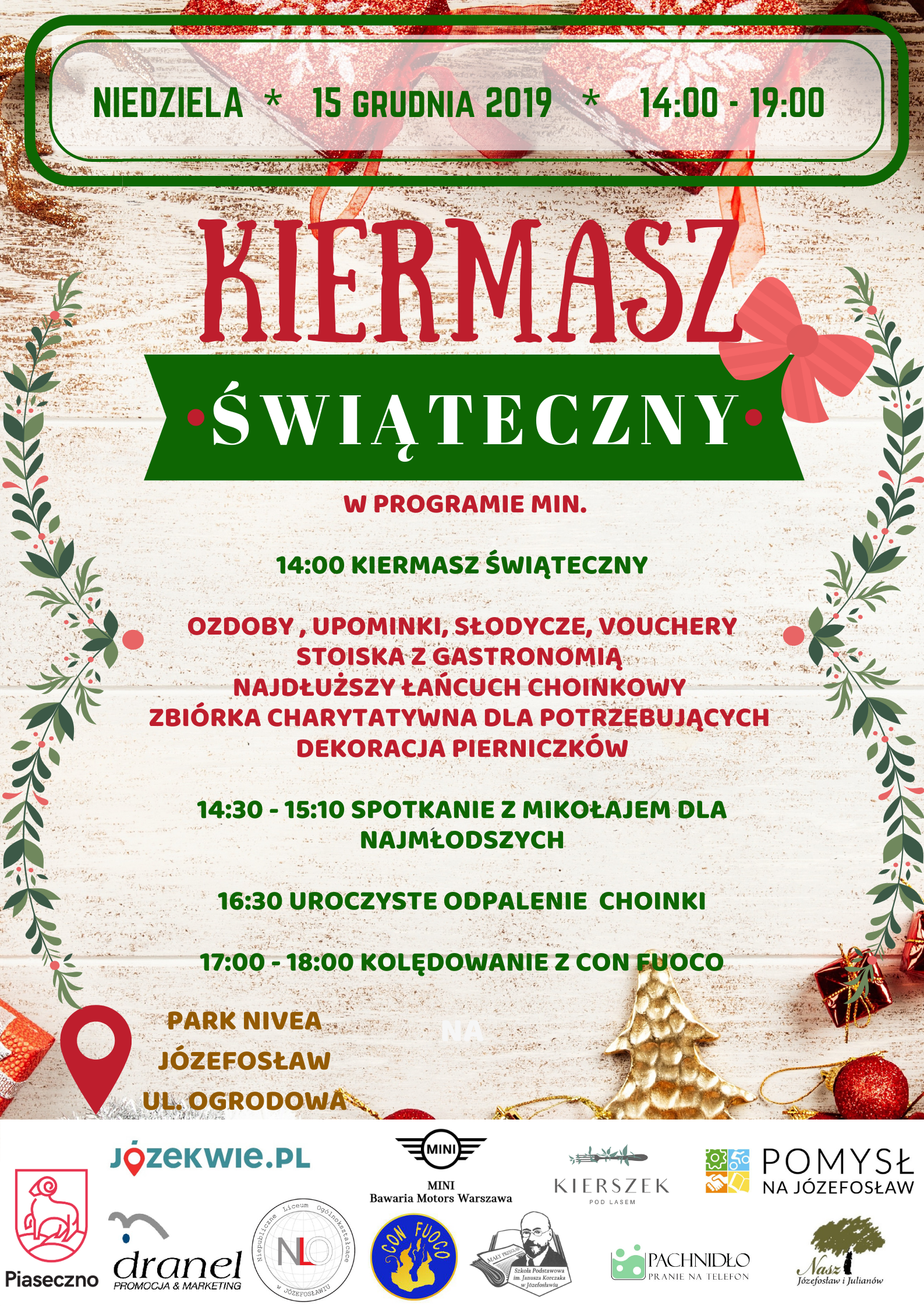 Zapraszamy serdecznie na Kiermasz świąteczny, który odbędzie się w Parku Nivea w Józefosławiu w dniu 15 grudnia