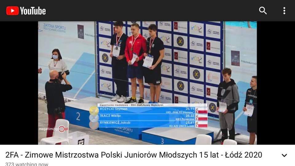 Mamy również Wicemistrza Polski Juniorów w pływaniu, styl motylkowy na dystansie 50 m !!!